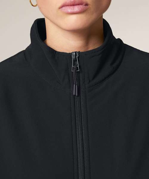 Set-in sleeves. Elastic binding at cuffs and hem. Inside back neck binding loop and back neck tape. Nylon coil zip with metal zip pull and cord ending. Brushed polar fleece fabric with anti-pilling finish on the inside and outside. Front side welt pockets with hidden zip closure. Contrast softshell fabric at the yoke and outer collar. Inside invisible zip at the wearer’s left chest for easy decoration.